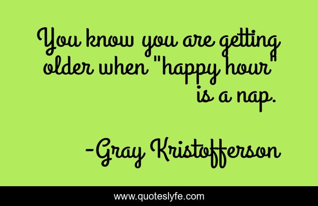 This page presents the quote "You know you are getting older when "happy hour" is a nap.". Author of this quote is Gray Kristofferson. This quote is about age, birthdays,.