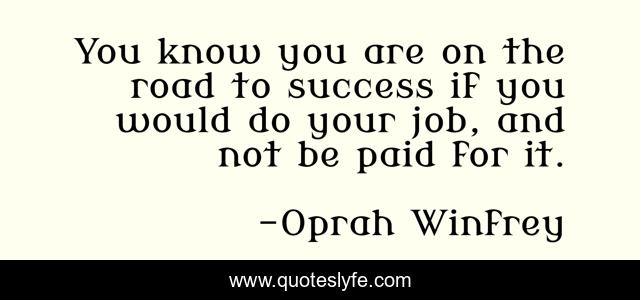 This page presents the quote "You know you are on the road to success if you would do your job, and not be paid for it.". Author of this quote is Oprah Winfrey. This quote is about job, road,.