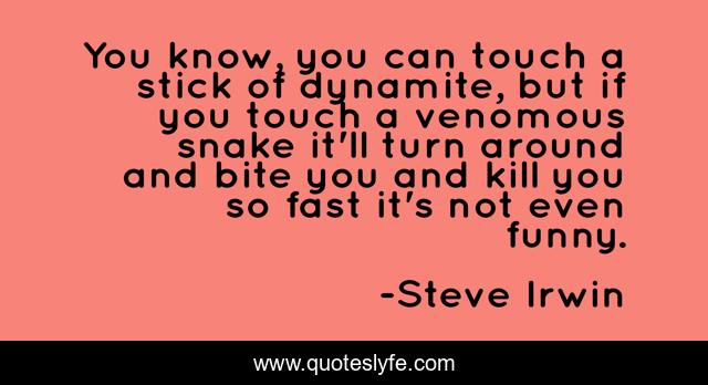This page presents the quote "You know, you can touch a stick of dynamite, but if you touch a venomous snake it'll turn around and bite you and kill you so fast it's not even funny.". Author of this quote is Steve Irwin. .