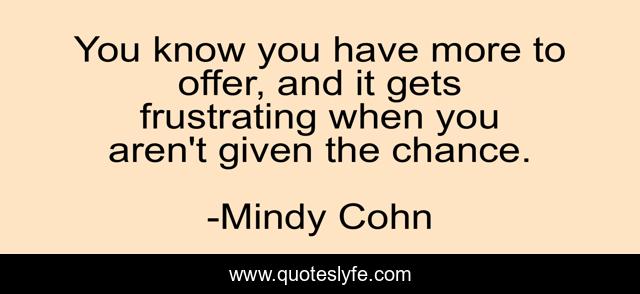This page presents the quote "You know you have more to offer, and it gets frustrating when you aren't given the chance.". Author of this quote is Mindy Cohn. .