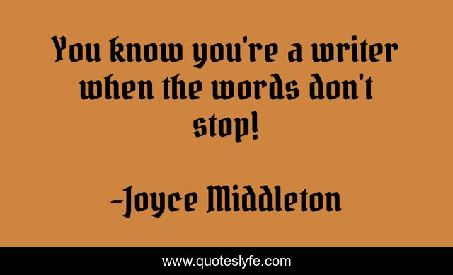 This page presents the quote "You know you're a writer when the words don't stop!". Author of this quote is Joyce Middleton. This quote is about author, writing,.