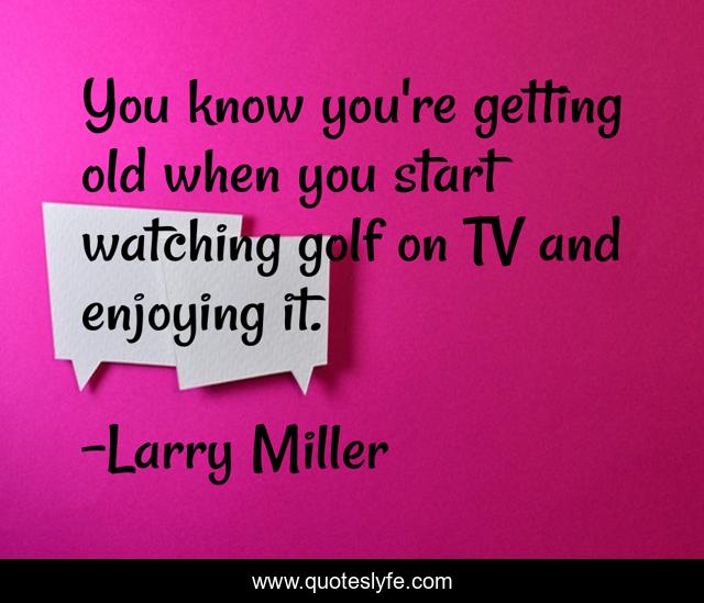 This page presents the quote "You know you're getting old when you start watching golf on TV and enjoying it.". Author of this quote is Larry Miller. .