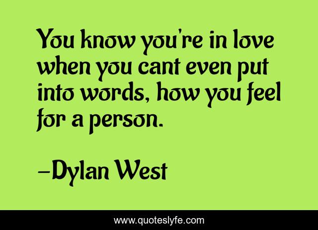 This page presents the quote "You know you're in love when you cant even put into words, how you feel for a person.". Author of this quote is Dylan West. This quote is about love, real-love, affection, love-hurts,.