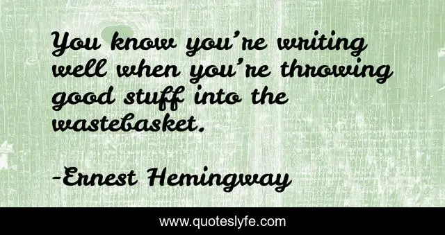 This page presents the quote "You know you’re writing well when you’re throwing good stuff into the wastebasket.". Author of this quote is Ernest Hemingway. .