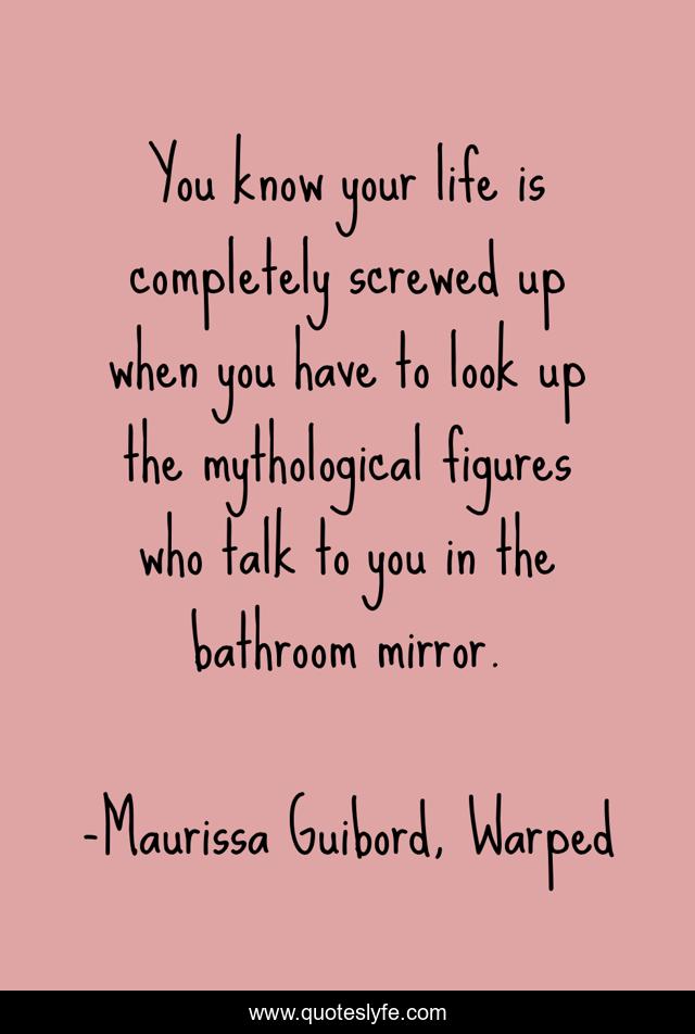 This page presents the quote "You know your life is completely screwed up when you have to look up the mythological figures who talk to you in the bathroom mirror.". Author of this quote is Maurissa Guibord, Warped. This quote is about humorous, unicorns, mythology,.