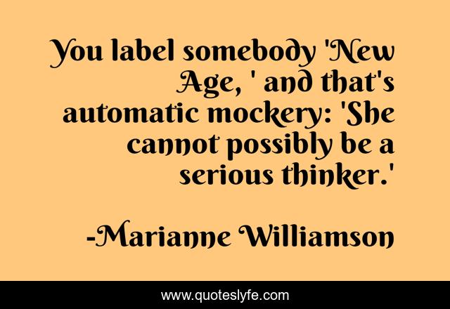This page presents the quote "You label somebody 'New Age, ' and that's automatic mockery: 'She cannot possibly be a serious thinker.'". Author of this quote is Marianne Williamson. This quote is about new, she,.