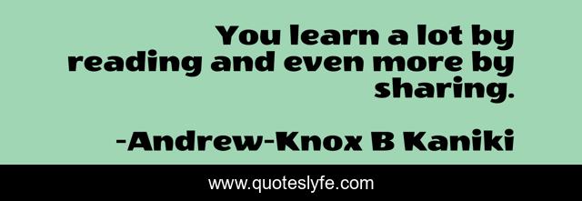 This page presents the quote "You learn a lot by reading and even more by sharing.". Author of this quote is Andrew-Knox B Kaniki. This quote is about sharing, read, learning, learn, teaching, reading,.