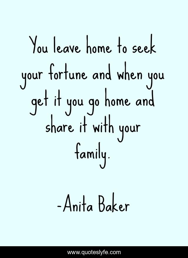This page presents the quote "You leave home to seek your fortune and when you get it you go home and share it with your family.". Author of this quote is Anita Baker. This quote is about friends, family,.