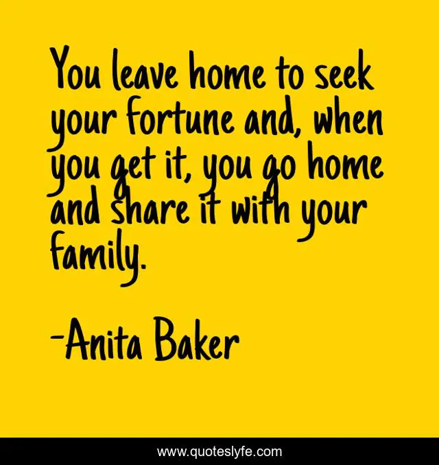This page presents the quote "You leave home to seek your fortune and, when you get it, you go home and share it with your family.". Author of this quote is Anita Baker. This quote is about home, fortune,.