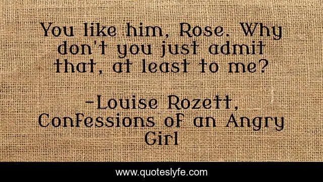 This page presents the quote "You like him, Rose. Why don't you just admit that, at least to me?". Author of this quote is Louise Rozett, Confessions of an Angry Girl. This quote is about love, secrets, crush, admiting, friends, affection,.