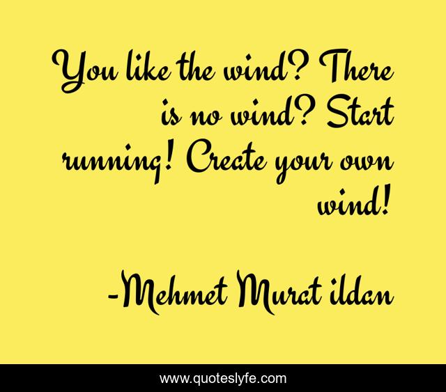 This page presents the quote "You like the wind? There is no wind? Start running! Create your own wind!". Author of this quote is Mehmet Murat ildan. This quote is about running, wind, murat-ildan,.