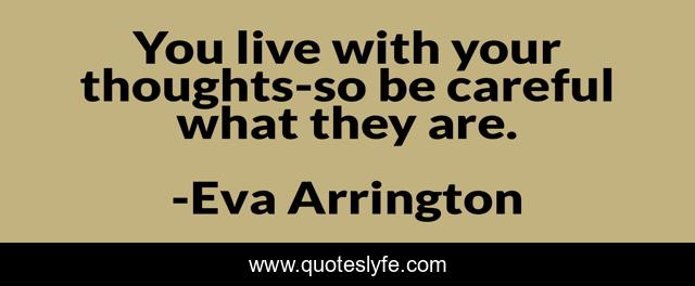 This page presents the quote "You live with your thoughts-so be careful what they are.". Author of this quote is Eva Arrington. This quote is about positive, confidence,.