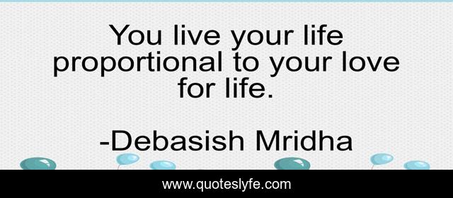 This page presents the quote "You live your life proportional to your love for life.". Author of this quote is Debasish Mridha. This quote is about life, love, knowledge, inspirational, intelligence, philosophy, wisdom, quotes, affection,.