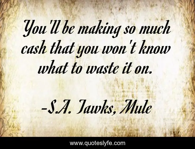 "S.A. Tawks, Mule Quotes." Quoteslyfe.com, 2025. Tue. 09 Dec. 2025. <https://www.quoteslyfe.com/quote/You-ll-be-making-so-much-cash-137285>.