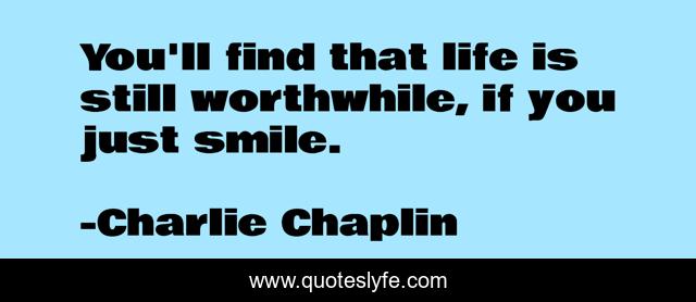 This page presents the quote "You'll find that life is still worthwhile, if you just smile.". Author of this quote is Charlie Chaplin. This quote is about charlie-chaplin, happiness, smile,.