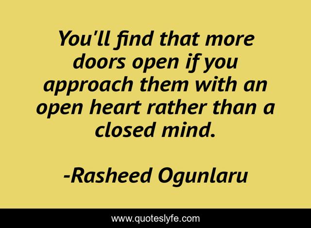 "Rasheed Ogunlaru Quotes." Quoteslyfe.com, 2025. Sat. 06 Dec. 2025. <https://www.quoteslyfe.com/quote/You-ll-find-that-more-doors-open-59991>.