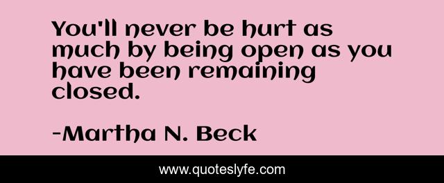 This page presents the quote "You'll never be hurt as much by being open as you have been remaining closed.". Author of this quote is Martha N. Beck. .