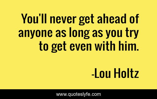 This page presents the quote "You'll never get ahead of anyone as long as you try to get even with him.". Author of this quote is Lou Holtz. This quote is about motivation, inspiration,.