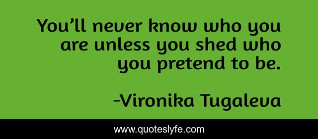 This page presents the quote "You’ll never know who you are unless you shed who you pretend to be.". Author of this quote is Vironika Tugaleva. This quote is about self-love, self-awareness, be-yourself, mask, identity, authenticity, who-you-are, authentic-self,.
