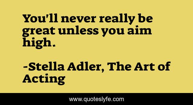 This page presents the quote "You'll never really be great unless you aim high.". Author of this quote is Stella Adler, The Art of Acting. This quote is about theatre, success, goal-achievement, drama, acting, dreams,.