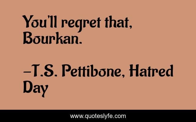 "T.S. Pettibone, Hatred Day Quotes." Quoteslyfe.com, 2025. Sat. 06 Dec. 2025. <https://www.quoteslyfe.com/quote/You-ll-regret-that-Bourkan-82591>.