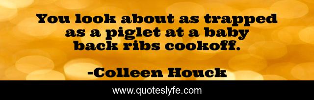 This page presents the quote "You look about as trapped as a piglet at a baby back ribs cookoff.". Author of this quote is Colleen Houck. .