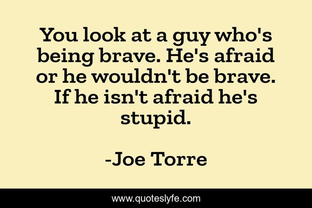 This page presents the quote "You look at a guy who's being brave. He's afraid or he wouldn't be brave. If he isn't afraid he's stupid.". Author of this quote is Joe Torre. .