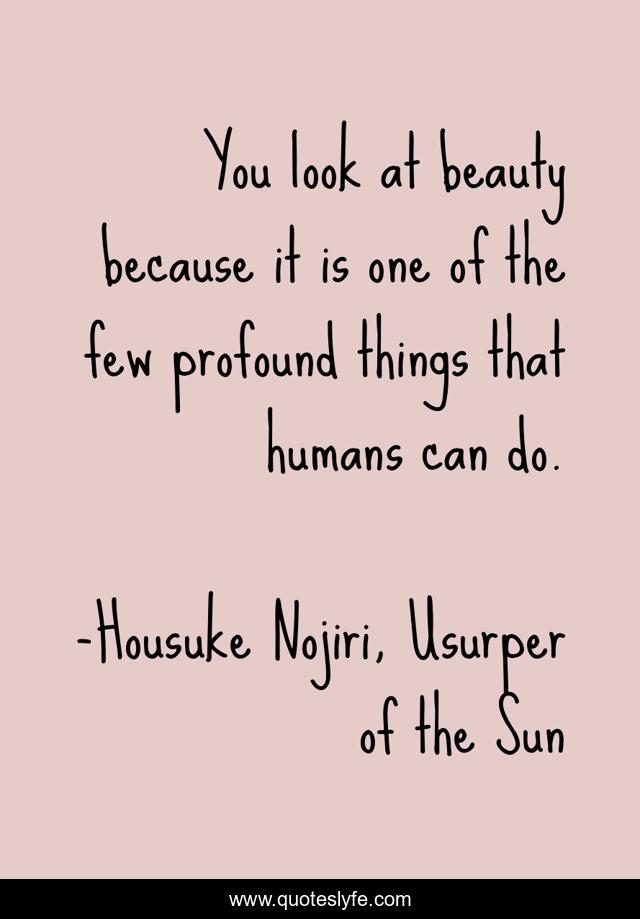 "Housuke Nojiri, Usurper of the Sun Quotes." Quoteslyfe.com, 2025. Tue. 09 Dec. 2025. <https://www.quoteslyfe.com/quote/You-look-at-beauty-because-it-is-61279>.