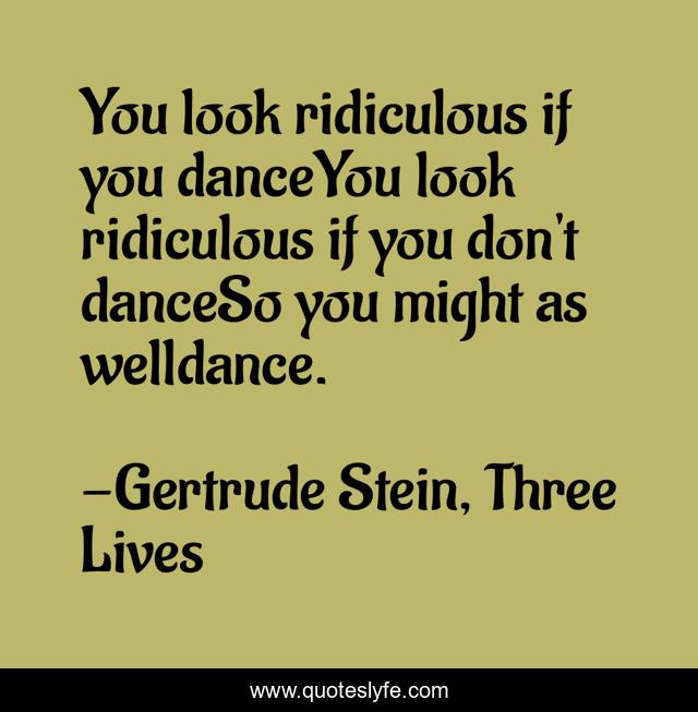"Gertrude Stein, Three Lives Quotes." Quoteslyfe.com, 2025. Mon. 08 Dec. 2025. <https://www.quoteslyfe.com/quote/You-look-ridiculous-if-you-danceYou-look-2697>.