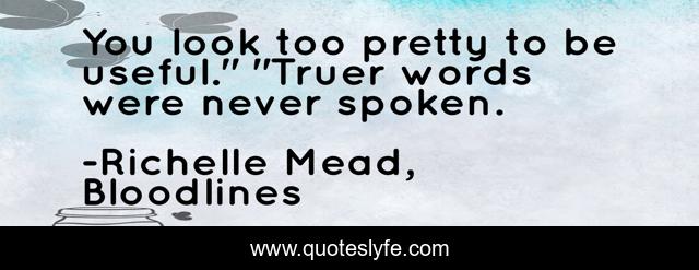 This page presents the quote "You look too pretty to be useful." "Truer words were never spoken.". Author of this quote is Richelle Mead, Bloodlines. .