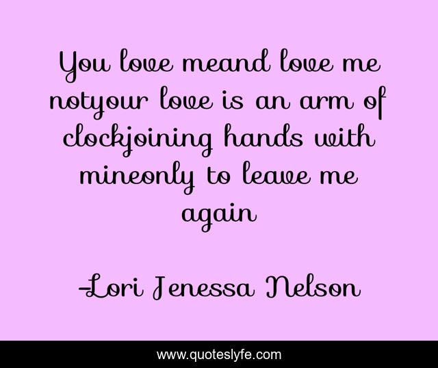 This page presents the quote "You love meand love me notyour love is an arm of clockjoining hands with mineonly to leave me again". Author of this quote is Lori Jenessa Nelson. This quote is about poem, love, romantic, poetry, affection, dear-lover,.