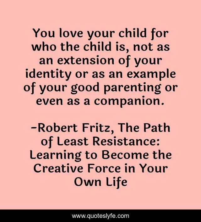 "Robert Fritz, The Path of Least Resistance: Learning to Become the Creative Force in Your Own Life Quotes." Quoteslyfe.com, 2025. Mon. 08 Dec. 2025. <https://www.quoteslyfe.com/quote/You-love-your-child-for-who-the-167109>.