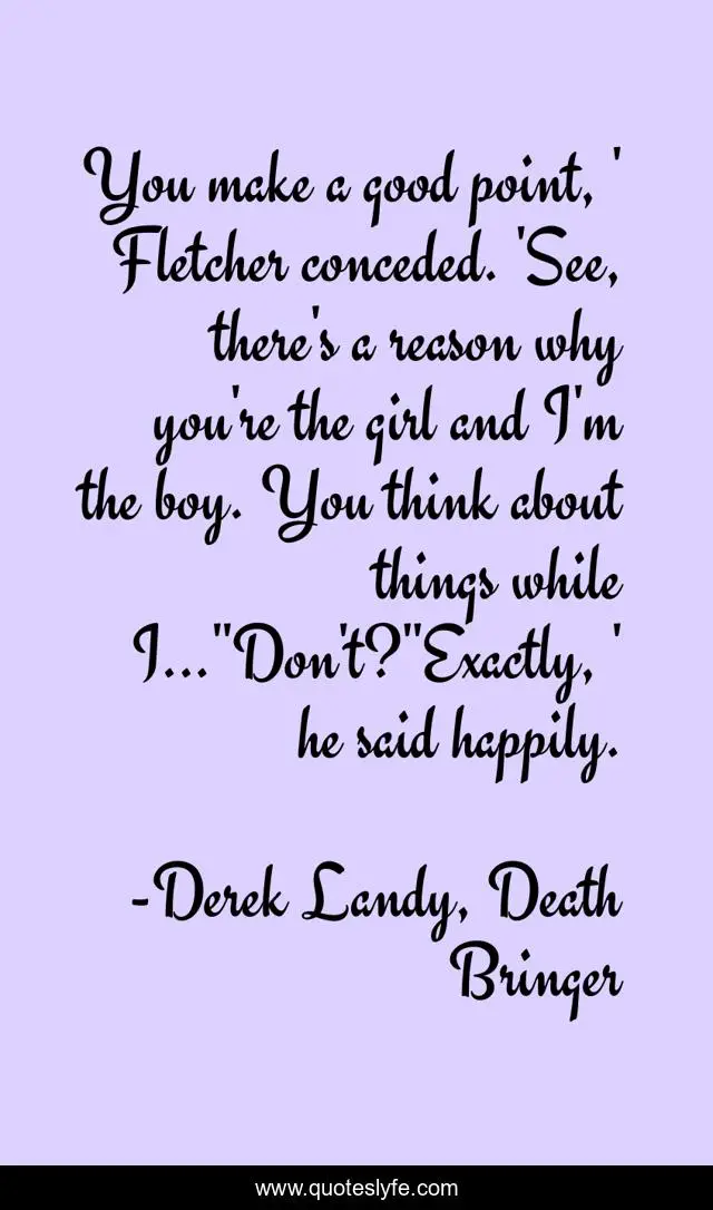 "Derek Landy, Death Bringer Quotes." Quoteslyfe.com, 2025. Fri. 05 Dec. 2025. <https://www.quoteslyfe.com/quote/You-make-a-good-point-Fletcher-conceded-55526>.
