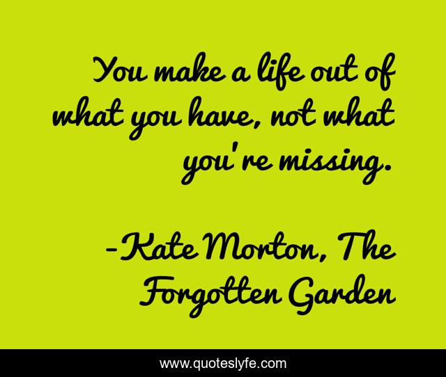 This page presents the quote "You make a life out of what you have, not what you're missing.". Author of this quote is Kate Morton, The Forgotten Garden. .