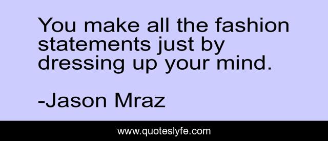 This page presents the quote "You make all the fashion statements just by dressing up your mind.". Author of this quote is Jason Mraz. This quote is about fashion, humor, intellectual,.