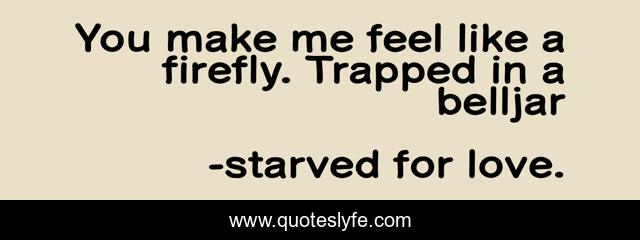 This page presents the quote "You make me feel like a firefly. Trapped in a belljar". Author of this quote is starved for love.. This quote is about 4 am conversations with the ghosts of old lovers, -ayushee ghoshal,.