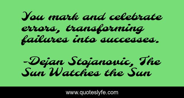 "Dejan Stojanovic, The Sun Watches the Sun Quotes." Quoteslyfe.com, 2025. Sat. 06 Dec. 2025. <https://www.quoteslyfe.com/quote/You-mark-and-celebrate-errors-transforming-failures-32386>.