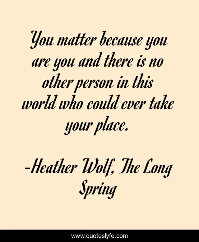 "Heather Wolf, The Long Spring Quotes." Quoteslyfe.com, 2025. Sat. 06 Dec. 2025. <https://www.quoteslyfe.com/quote/You-matter-because-you-are-you-and-185637>.