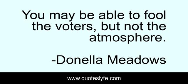 This page presents the quote "You may be able to fool the voters, but not the atmosphere.". Author of this quote is Donella Meadows. This quote is about fool, may,.