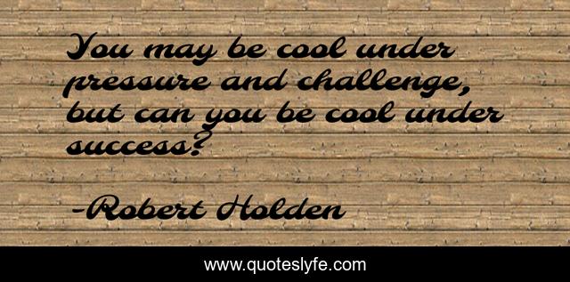 This page presents the quote "You may be cool under pressure and challenge, but can you be cool under success?". Author of this quote is Robert Holden. This quote is about pressure, challenge, success, cool,.