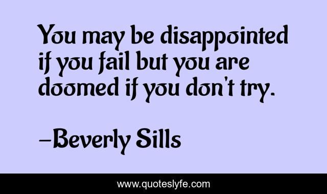 "Beverly Sills Quotes." Quoteslyfe.com, 2025. Sat. 06 Dec. 2025. <https://www.quoteslyfe.com/quote/You-may-be-disappointed-if-you-fail-259493>.