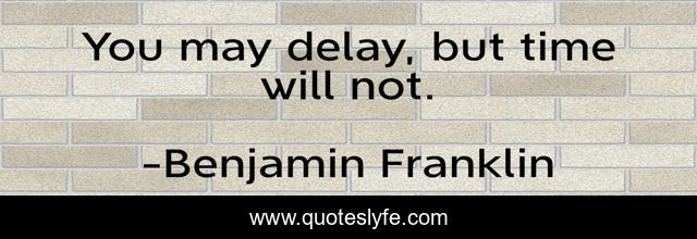 "Benjamin Franklin Quotes." Quoteslyfe.com, 2025. Fri. 05 Dec. 2025. <https://www.quoteslyfe.com/quote/You-may-delay-but-time-will-not-38346>.