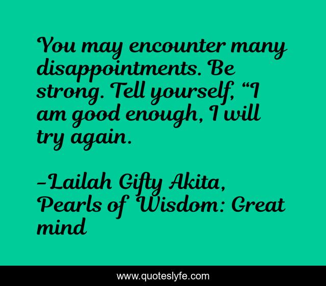 "Lailah Gifty Akita, Pearls of Wisdom: Great mind Quotes." Quoteslyfe.com, 2025. Sun. 07 Dec. 2025. <https://www.quoteslyfe.com/quote/You-may-encounter-many-disappointments-Be-strong-34397>.