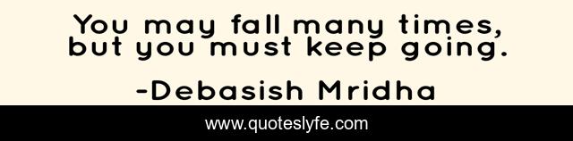 This page presents the quote "You may fall many times, but you must keep going.". Author of this quote is Debasish Mridha. This quote is about philosophy, you-must-keep-going, debasish-mridha, debasish-mridha-m-d, keep-going, quotes, inspirational, enthusiasm, you-may-fall-many-time,.