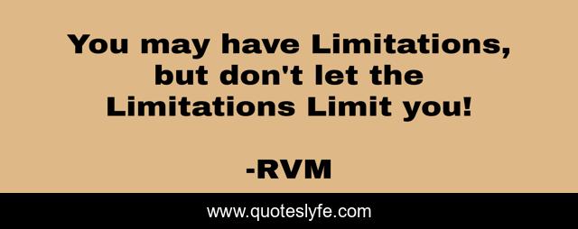 This page presents the quote "You may have Limitations, but don't let the Limitations Limit you!". Author of this quote is RVM. This quote is about motivation, inspiration,.