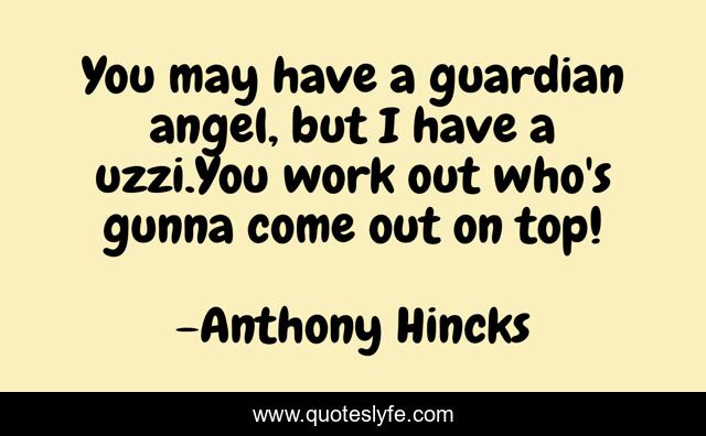 This page presents the quote "You may have a guardian angel, but I have a uzzi.You work out who's gunna come out on top!". Author of this quote is Anthony Hincks. This quote is about philosophy, angel, gaurdian-angel, uzzi, on-top, guns,.