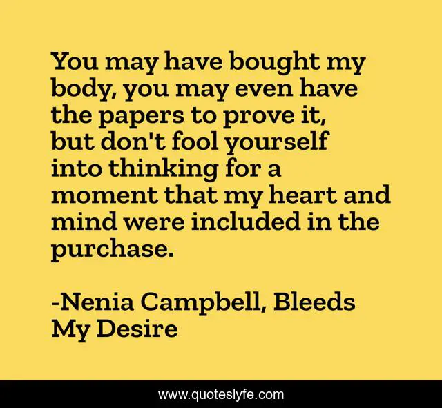 "Nenia Campbell, Bleeds My Desire Quotes." Quoteslyfe.com, 2025. Sat. 06 Dec. 2025. <https://www.quoteslyfe.com/quote/You-may-have-bought-my-body-you-228259>.