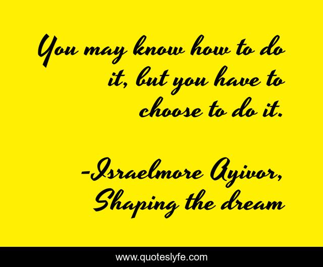 "Israelmore Ayivor, Shaping the dream Quotes." Quoteslyfe.com, 2025. Fri. 05 Dec. 2025. <https://www.quoteslyfe.com/quote/You-may-know-how-to-do-it-129623>.