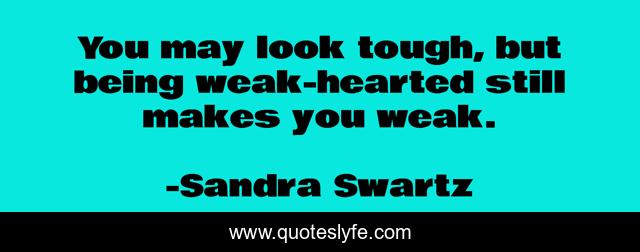 This page presents the quote "You may look tough, but being weak-hearted still makes you weak.". Author of this quote is Sandra Swartz. This quote is about weakness, weak,.