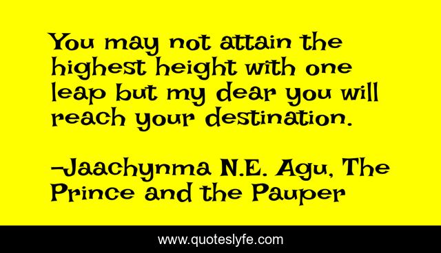 "Jaachynma N.E. Agu, The Prince and the Pauper Quotes." Quoteslyfe.com, 2025. Fri. 05 Dec. 2025. <https://www.quoteslyfe.com/quote/You-may-not-attain-the-highest-height-28832>.